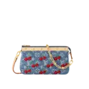 - Color & Hardware: Denim blue base with vibrant cherry motif, gold-toned hardware.