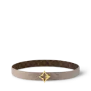 Elegant and refined, this 30mm reversible belt combines a sculptural floral buckle with a sleek, feminine silhouette. One side features a smooth grained leather texture in soft grey, while the reverse presents a monogram-patterned coated canvas for a more classic look. Its openwork flower buckle in gold-tone metal adds a jewelry-like accent that elevates any outfit with understated charm.